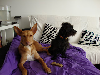 Y ahora aquí está, durmiendo todo el día como una marmota y haciendo la cabra loca cuando salimos de paseo. Aún es desconfiada con la gente que no conoce, y no le gusta que le toquen mucho, simplemente soporta las caricias, pero ya mueve la colita cuando nos ve y saluda contenta a todos los perros que encuentra.